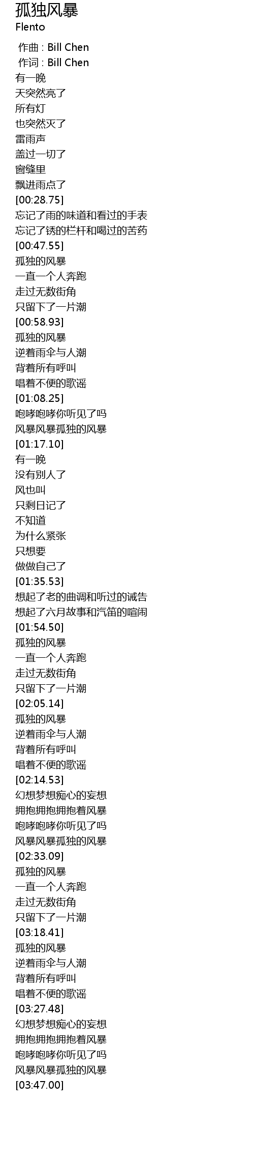 | [03:41.72] | fēng bào fēng bào gū dú de fēng bào |