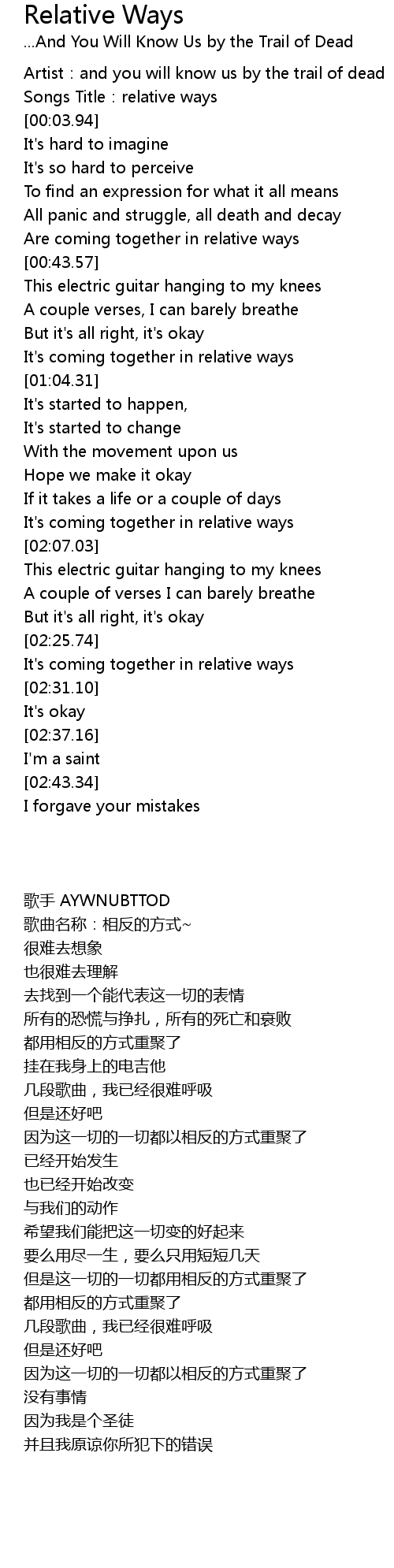 | [00:00.32] | Artist:and you will know us by the trail of dead |