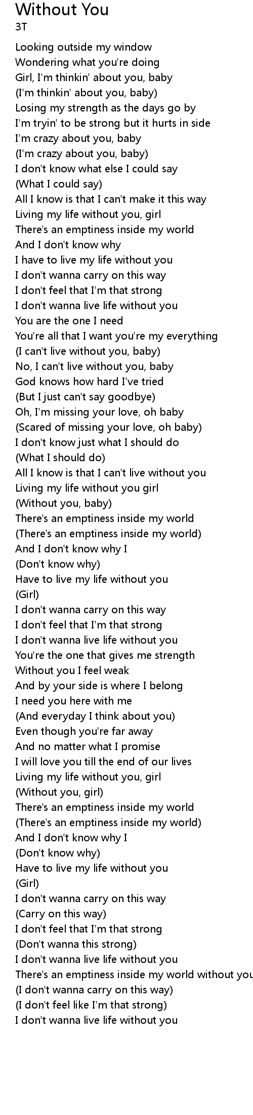 | I don't wanna live life without you | |