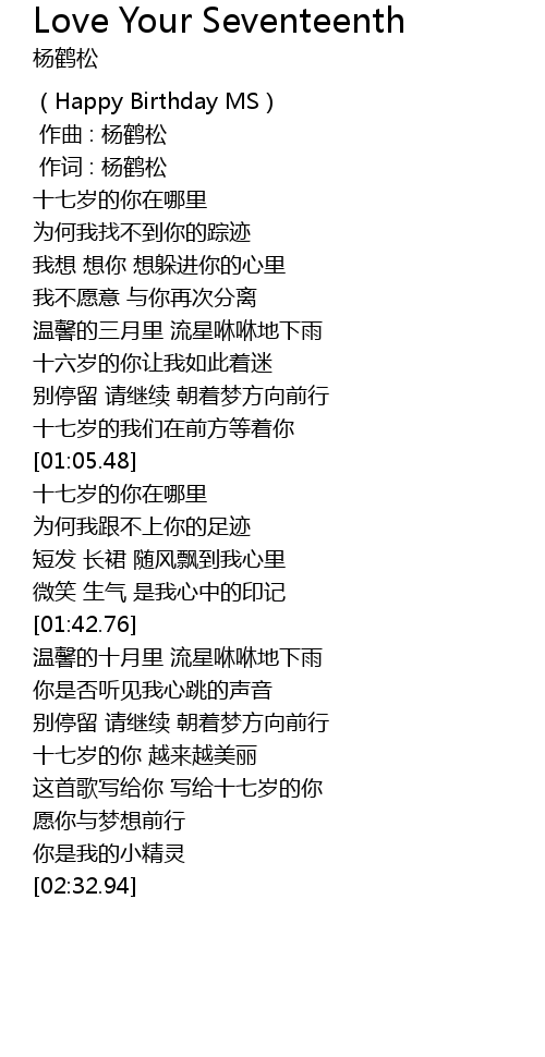 | [02:01.59] | 十七岁的你 越来越美丽 |
