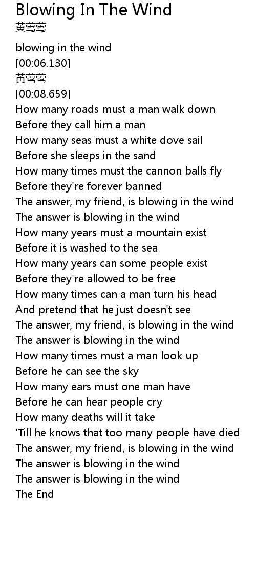 | [00:48.670] | The answer, my friend, is blowing in the wind |
