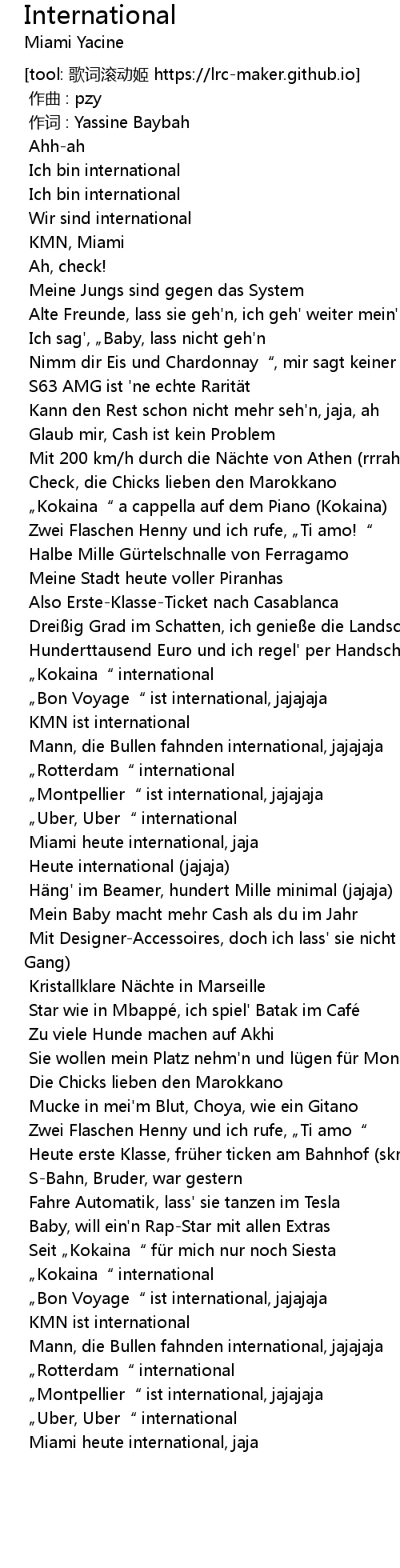 | [01:21.541] | Häng' im Beamer, hundert Mille minimal (jajaja) |