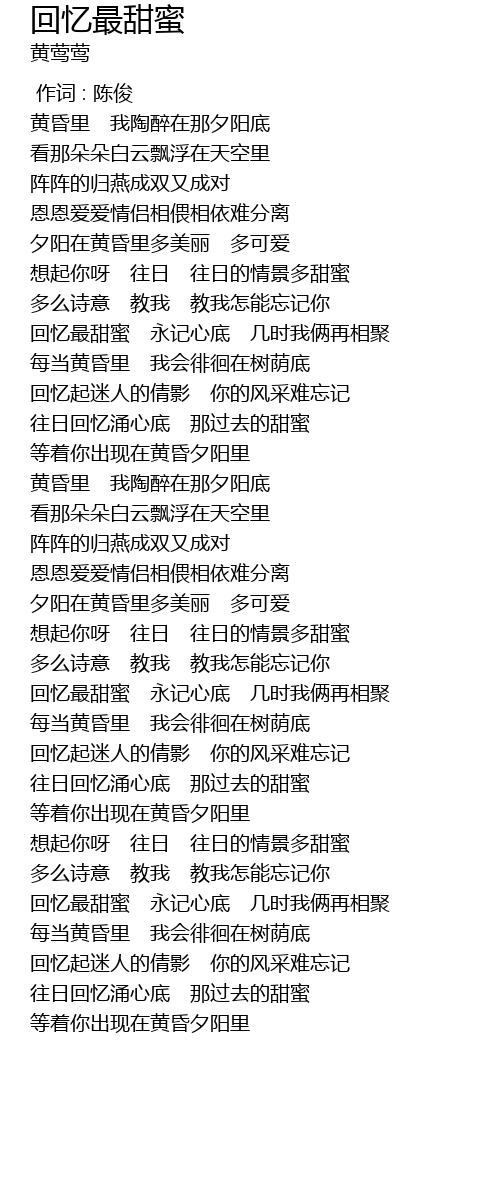 | [03:48.43] | 回忆最甜蜜 永记心底 几时我俩再相聚 |