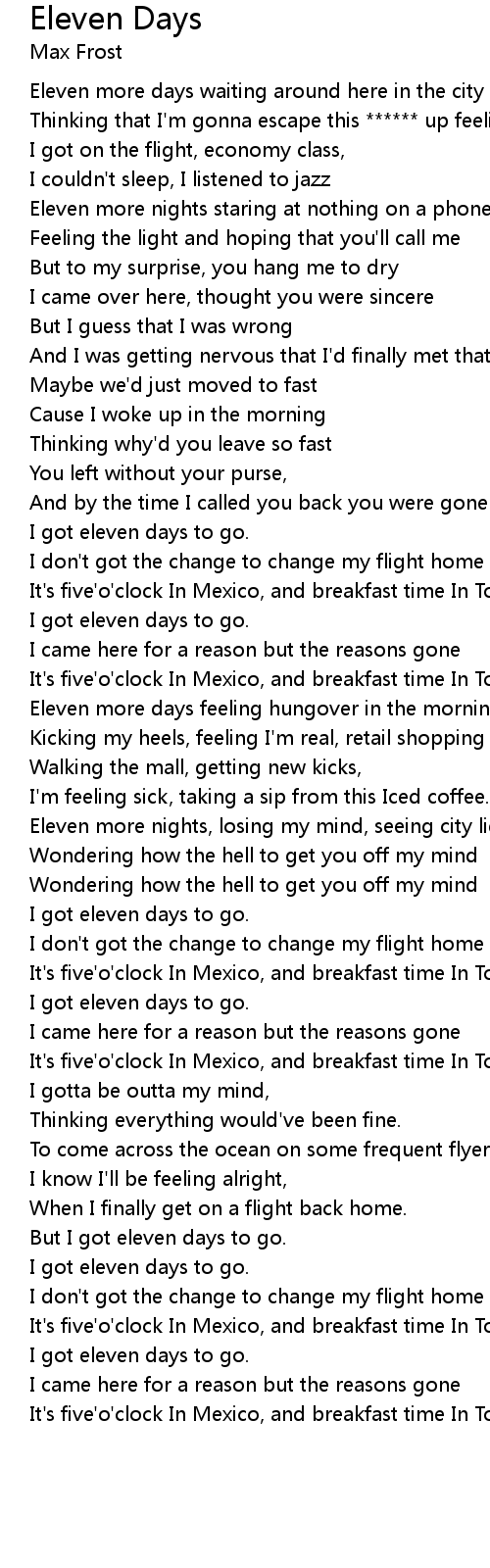 | [00:14.07] | Eleven more days waiting around here in the city |