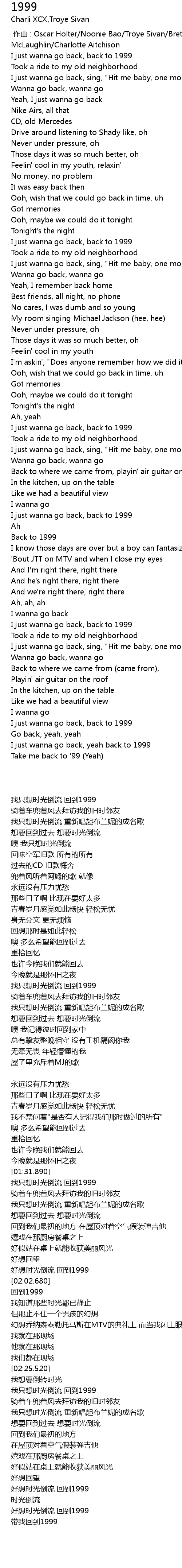 | [01:33.360] | I just wanna go back, back to 1999 |