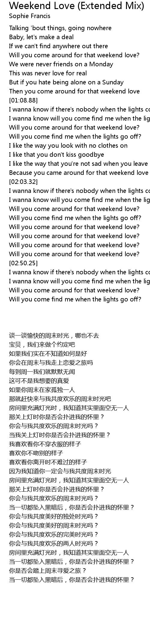 Will you come around for that weekend love? |