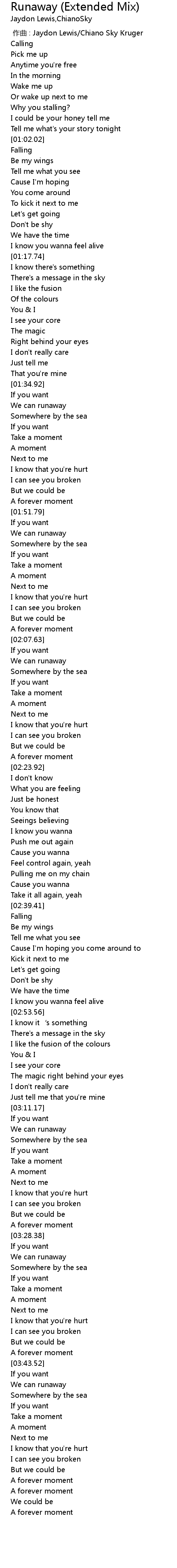 | [00:00.000] | 作曲 : Jaydon Lewis/Chiano Sky Kruger |
