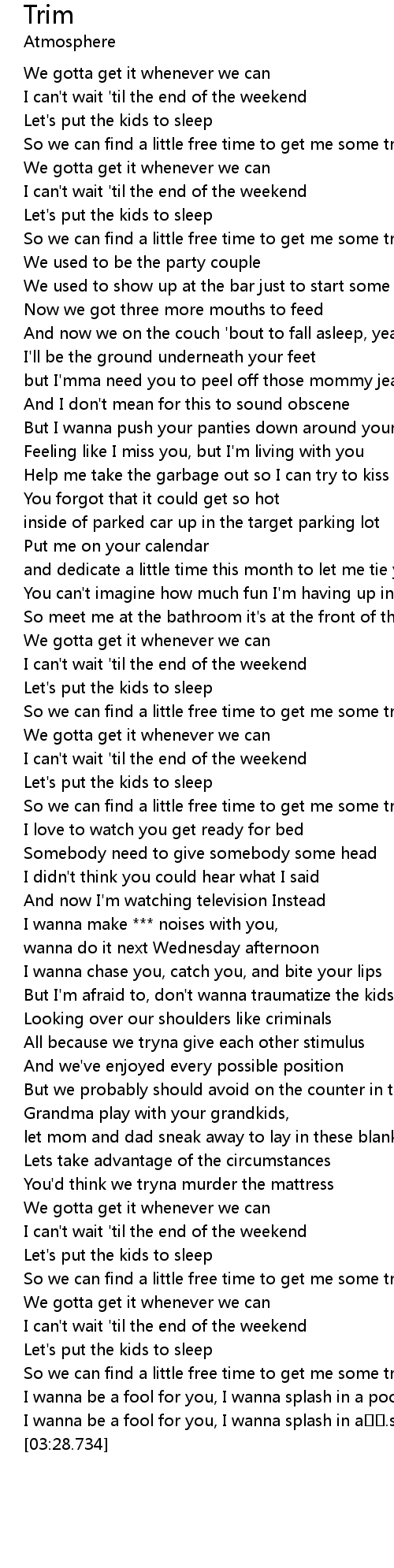 | [02:50.432] | So we can find a little free time to get me some trim |