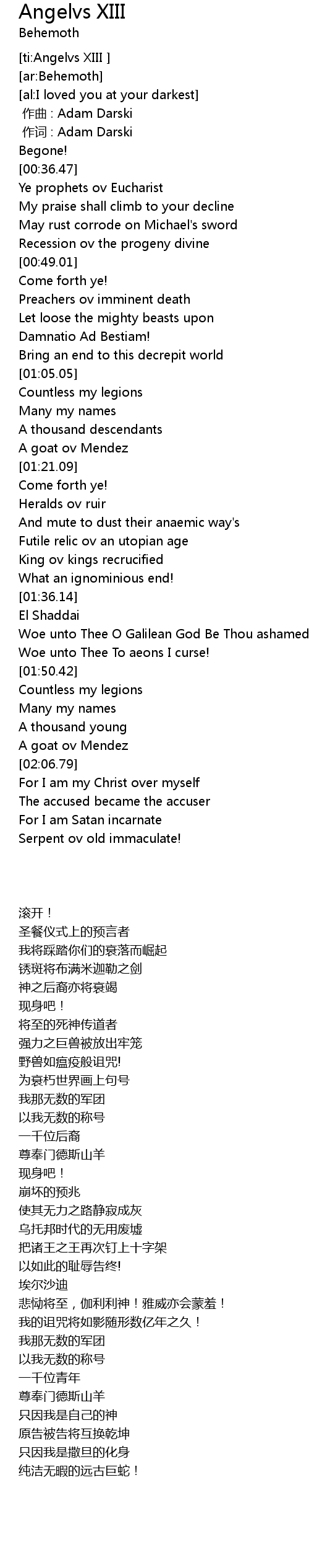 | [00:00.000] | zuo qu : Adam Darski |