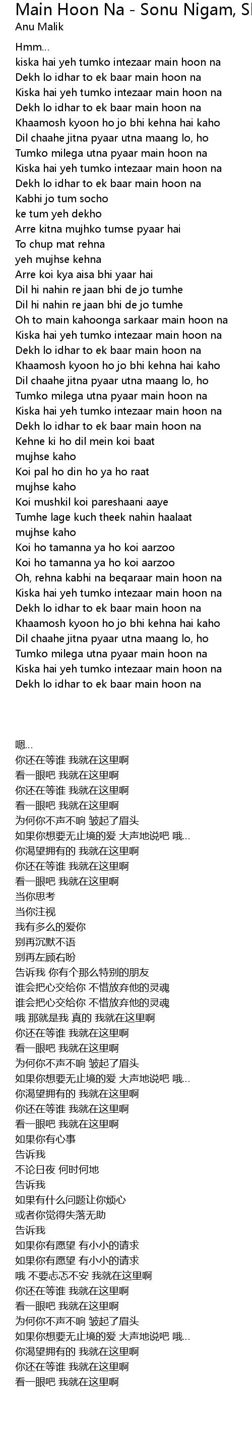 | [02:53.38] | Dekh lo idhar to ek baar main hoon na |