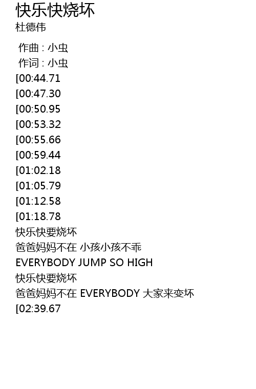 | [02:10.34][00:50.95] | 快乐快要烧坏 |