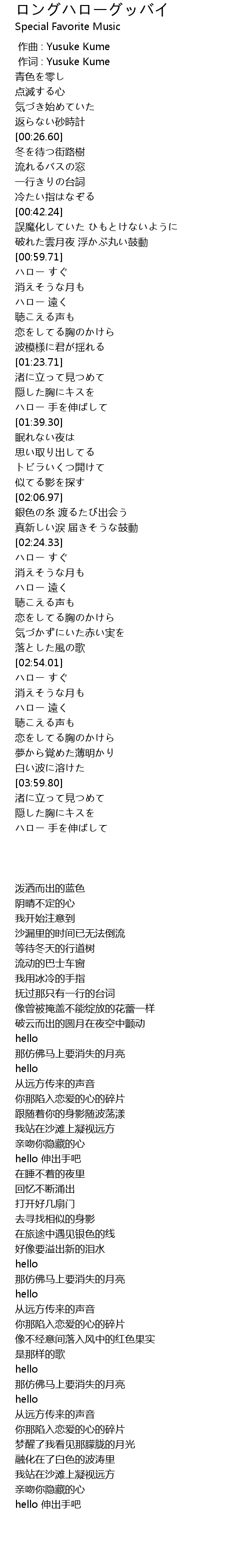 | [02:33.25] | ハロー 遠く |