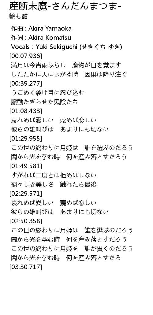 | [02:50.691] | この世の終わりに月姫は 誰を選ぶのだろう |