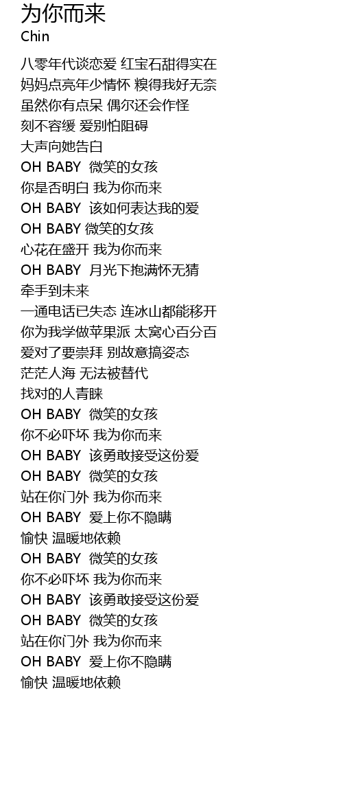 | [00:54.57] | nǐ shì fǒu míng bái wǒ wèi nǐ ér lái |