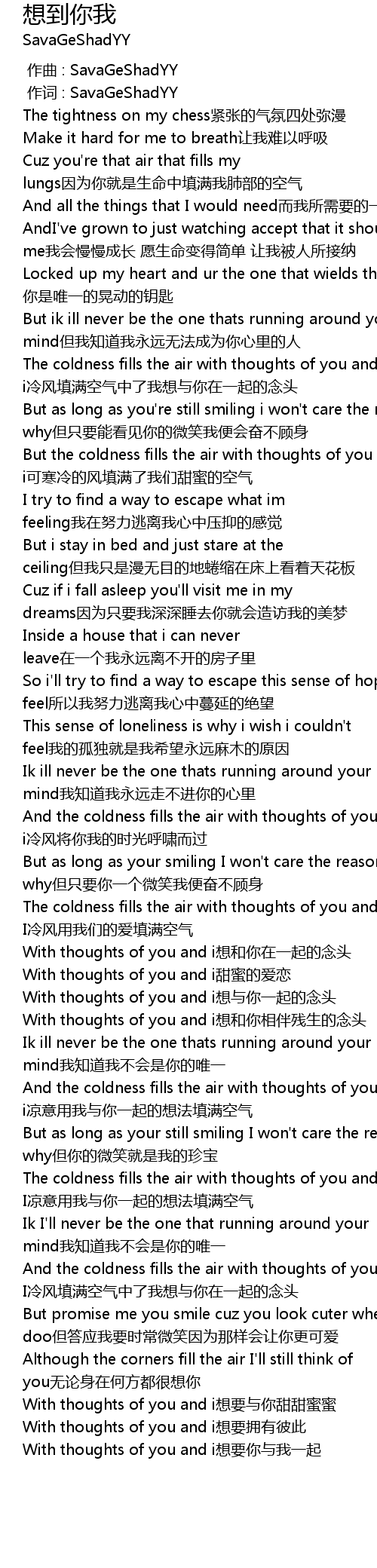 | [02:10.90] | With thoughts of you and i xiǎng hé nǐ xiāng bàn cán shēng de niàn tou |