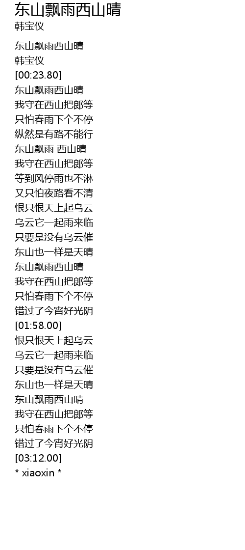| [01:35.30] | dong shan piao yu xi shan qing |