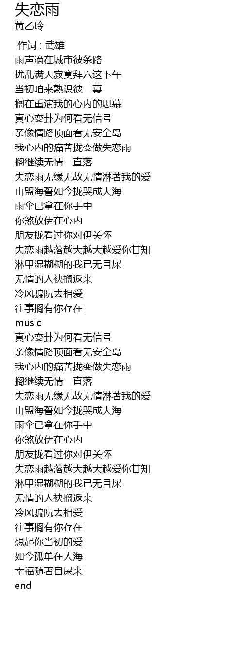 | [01:45.78] | 失恋雨越落越大越大越爱你甘知 |