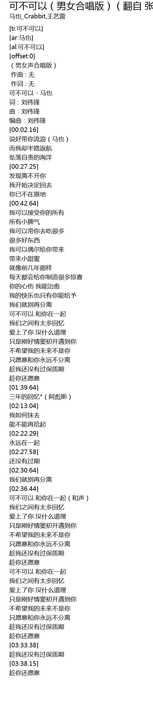 | [02:37.23] | 可不可以 和你在一起(和声) |