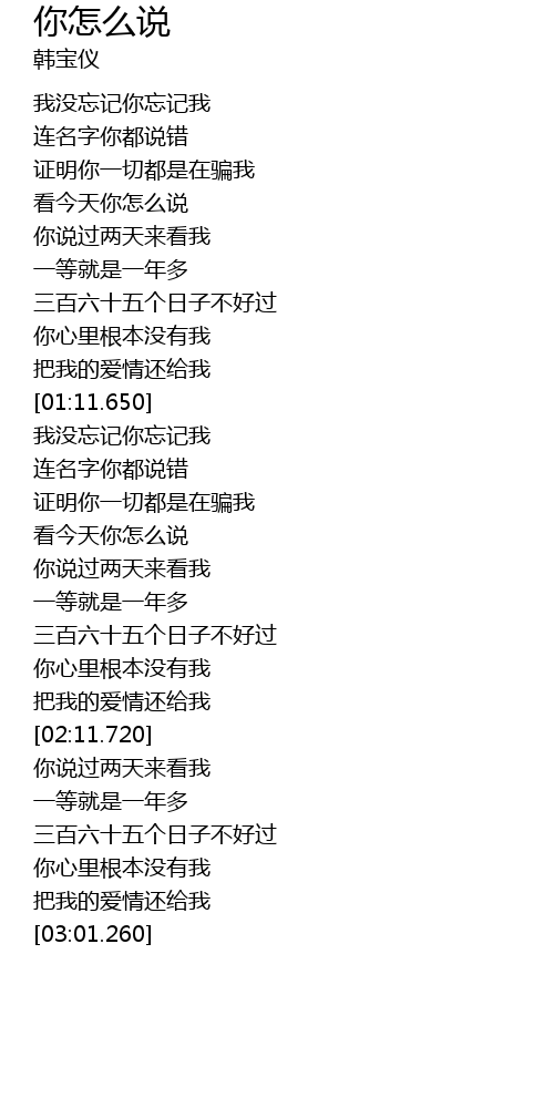 | [01:44.160] | ni shuo guo liang tian lai kan wo |