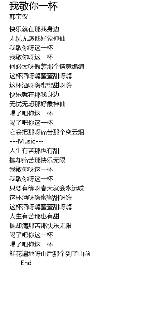 | [00:22.65] | wǒ jìng nǐ ya zhè yī bēi |