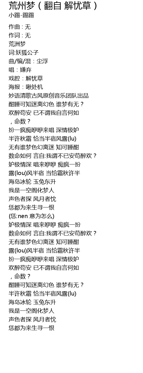 | wú yǒu shuí mèng sè huàn lí mí zhī kě shuì hān | |