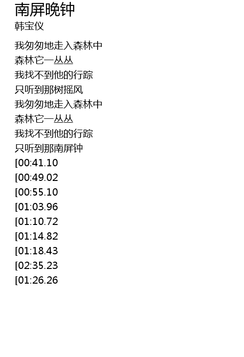 | [01:42.60][00:41.10] | 南屏晚钟 随风飘送 |