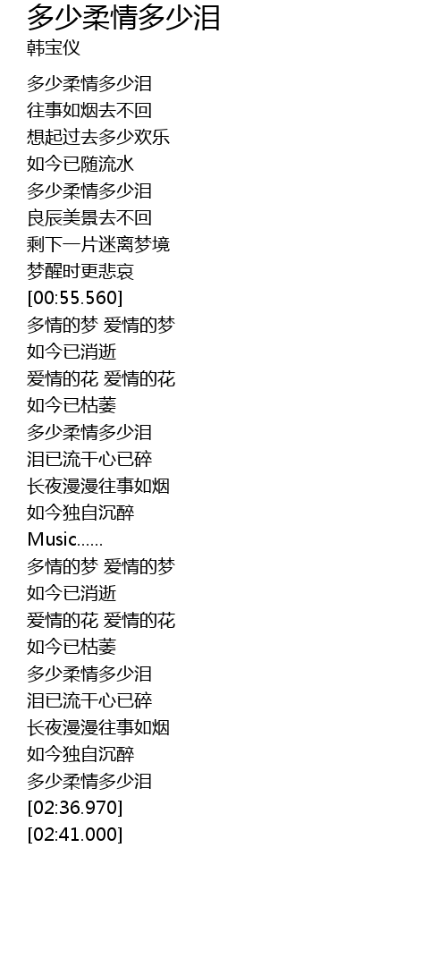 | [02:28.720] | duō shǎo róu qíng duō shǎo lèi |