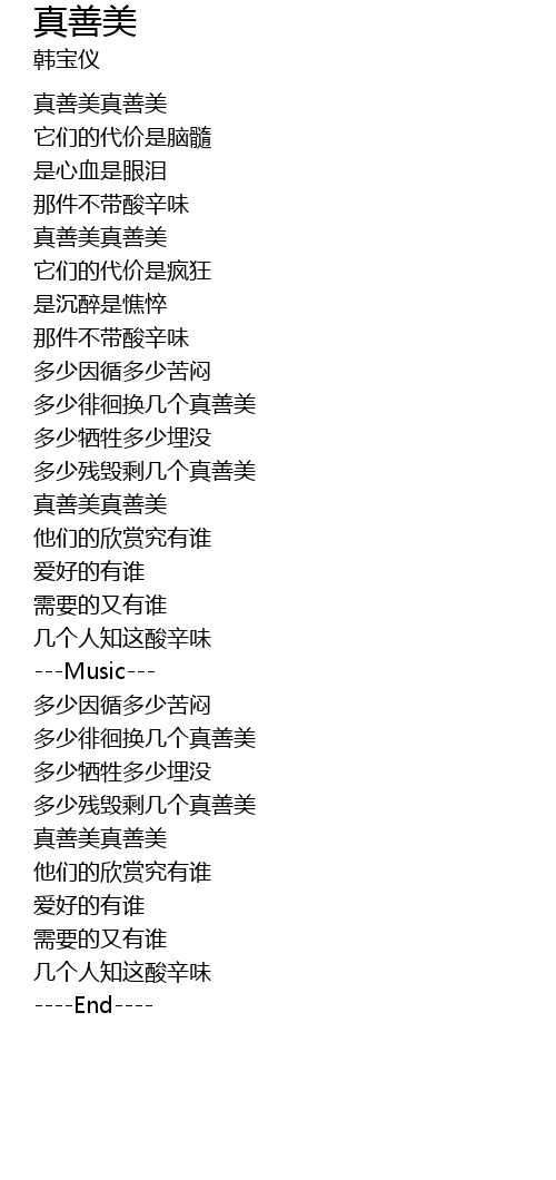 | [01:17.37] | 多少残毁剩几个真善美 |
