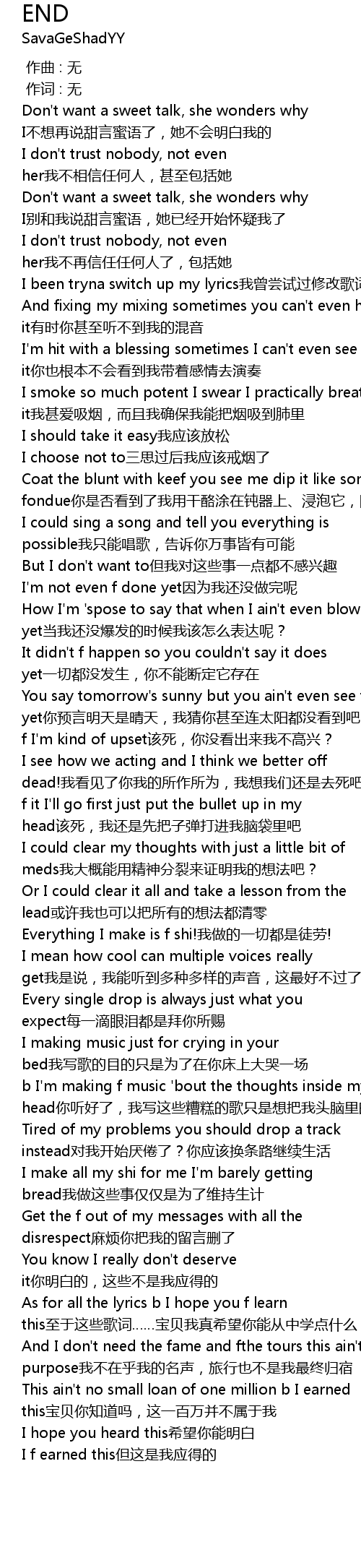 | [01:51.99] | Get the f out of my messages with all the disrespect麻烦你把我的留言删了 |