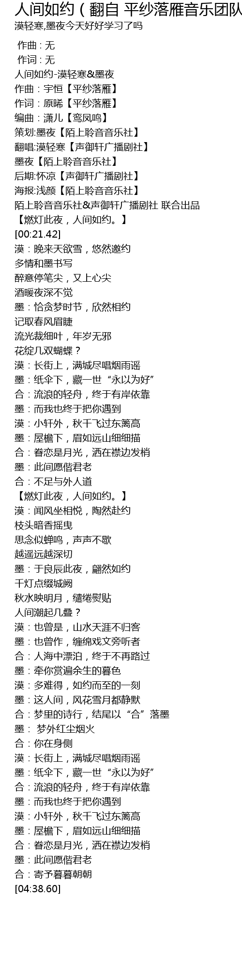 | [00:15.72] | 陌上聆音音乐社&声御轩广播剧社 联合出品 |