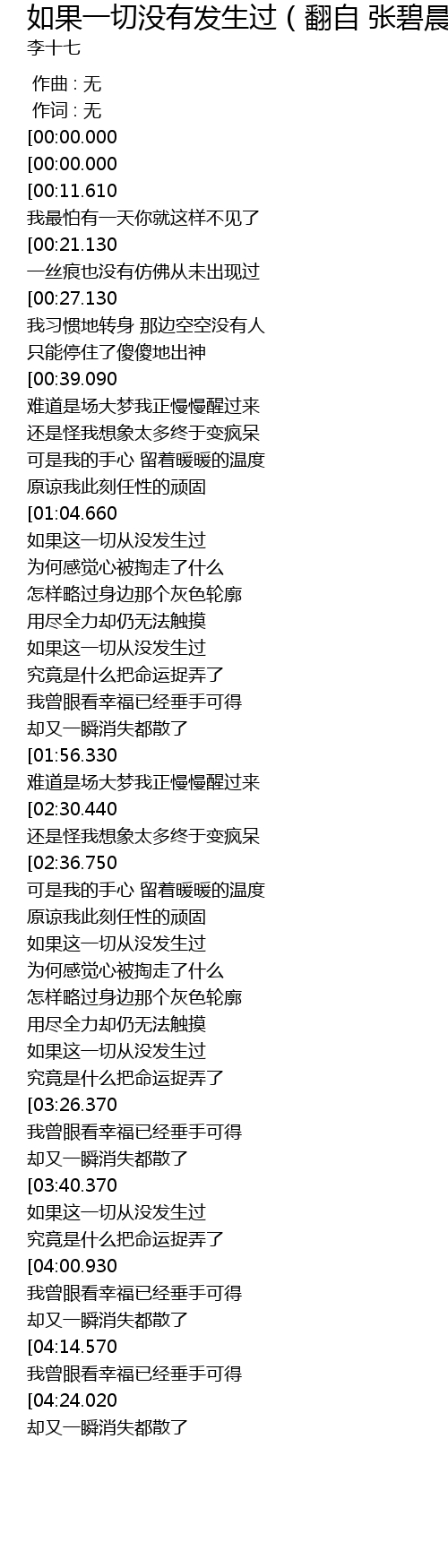 | [03:49.679] | rú guǒ zhè yī qiè cóng méi fā shēng guò |