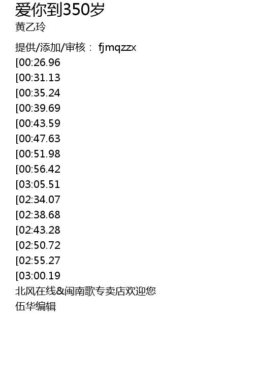| [03:09.54][02:34.07][01:06.45] | 爱你爱到350岁 |