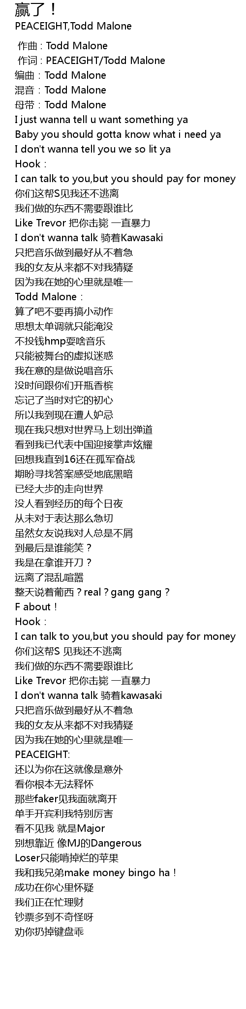 | [00:01.000] | 作词 : PEACEIGHT/Todd Malone |