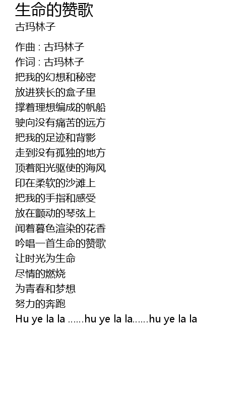 | Hu ye la la ……hu ye la la……hu ye la la |