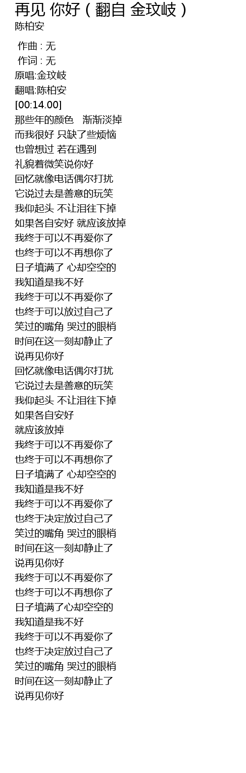 | [03:01.04] | shuō zài jiàn nǐ hǎo |