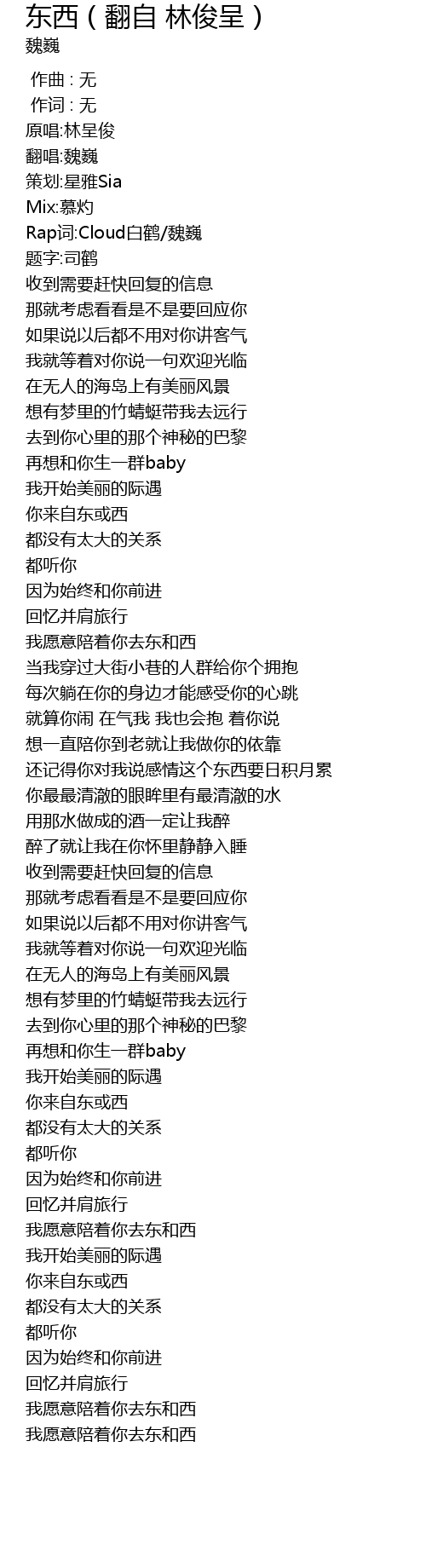 | [00:09.30] | Rap词:Cloud白鹤/魏巍 |
