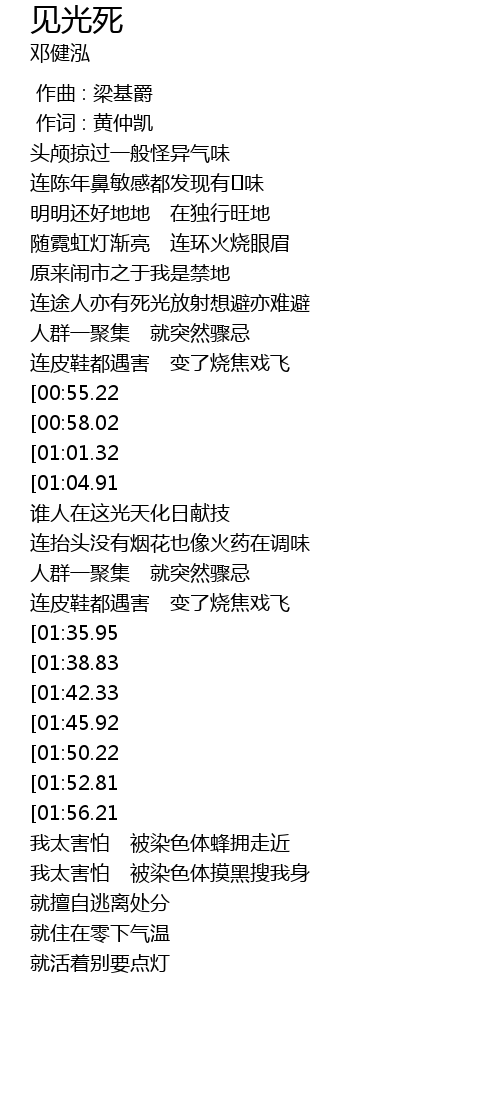 | [02:52.57][01:56.21] | 怕看交通灯 火红灵魂 |