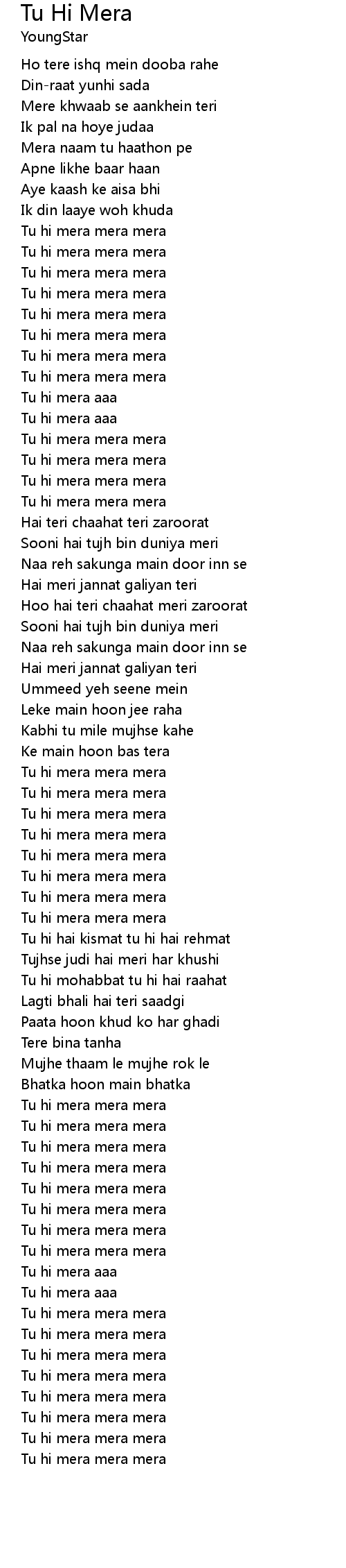 | [00:41.36] | Tu hi mera mera mera |