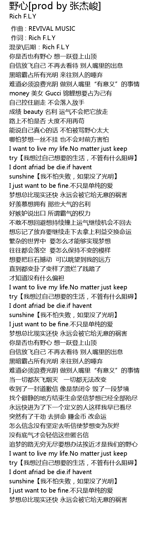 | [00:01.000] | 作词 : Rich F.L.Y |