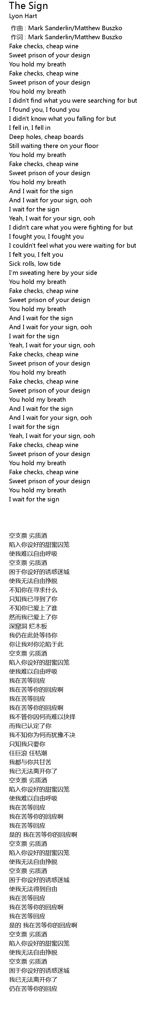 | [00:00.000] | 作曲 : Mark Sanderlin/Matthew Buszko |