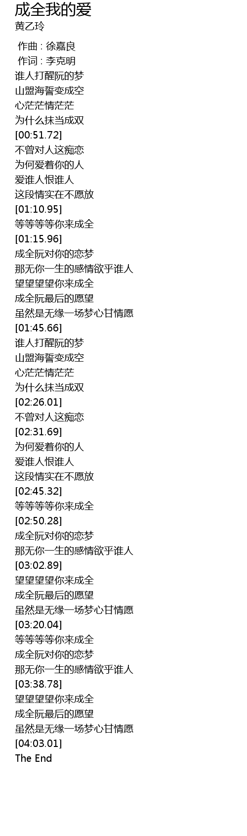 | [03:12.13] | 虽然是无缘一场梦心甘情愿 |