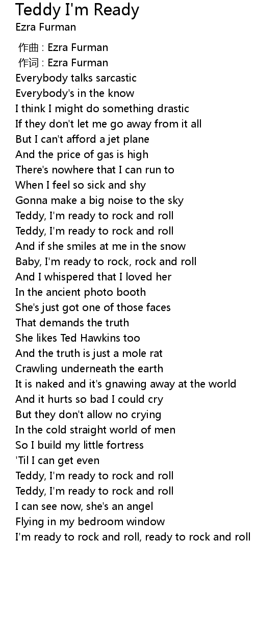 | [01:10.784] | Teddy, I' m ready to rock and roll |
