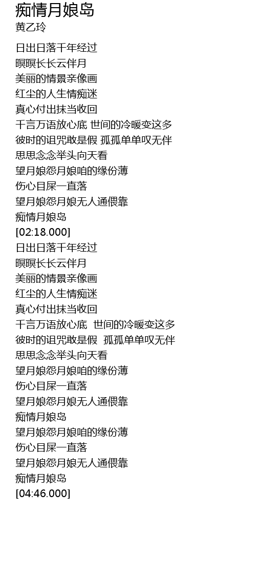 | [03:51.000] | 望月娘怨月娘咱的缘份薄 |