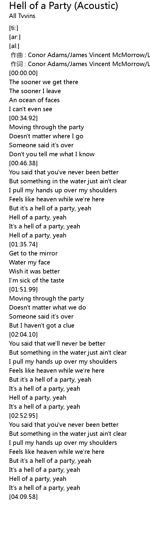 | [03:48.83] | But it' s a hell of a party, yeah |