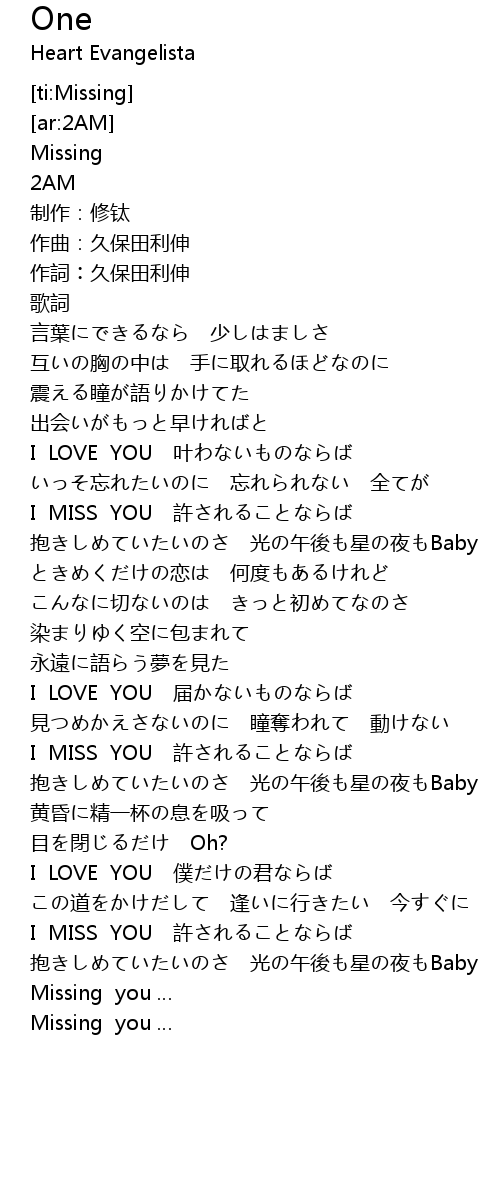 | [02:37.769] | 抱きしめていたいのさ 光の午後も星の夜もBaby |