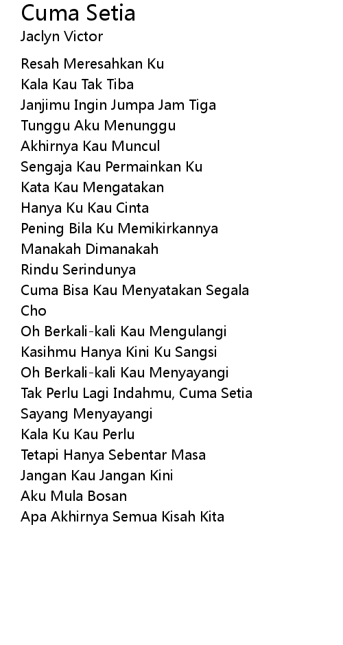 Tak Perlu Lagi Indahmu, Cuma Setia |