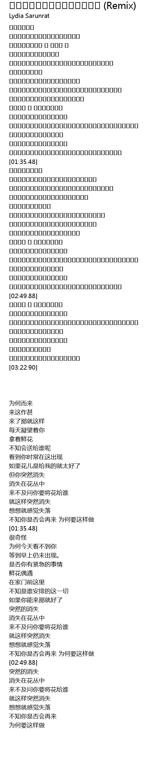 หายไปกับดอกไม้ (Remix) Remix Lyrics