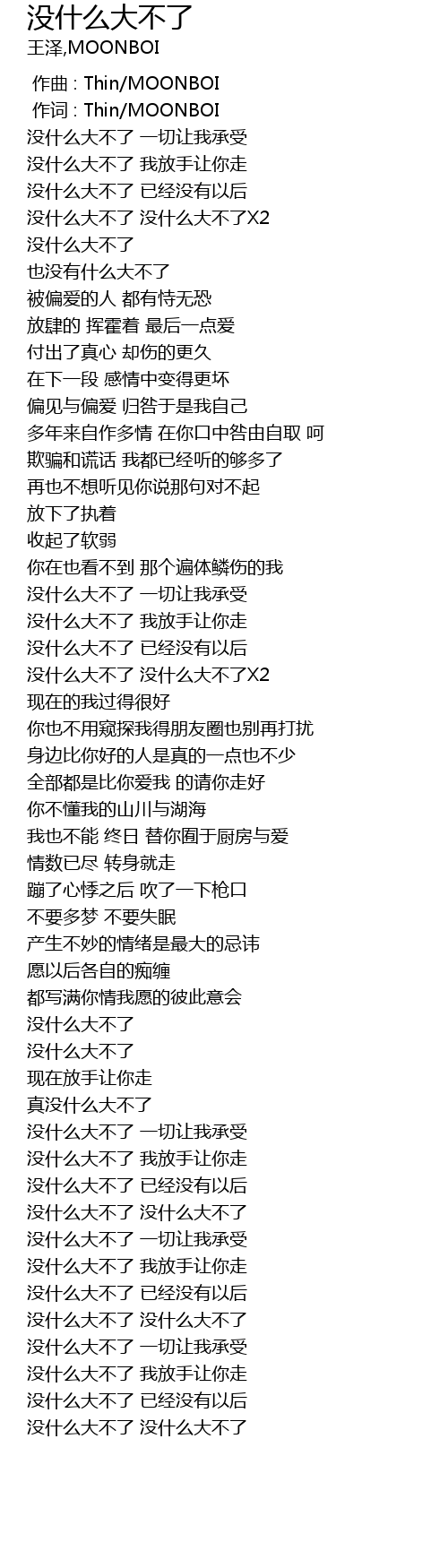 | [00:30.555] | 没什么大不了 没什么大不了X2 |