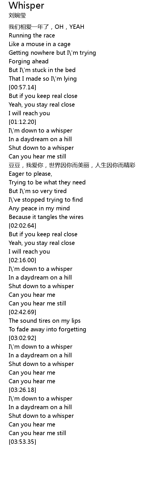 | [02:17.61] | I\'m down to a whisper |