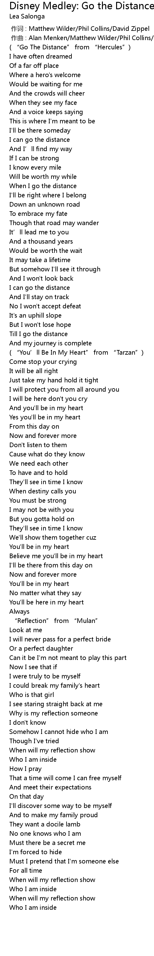| [00:14.00] | ( “Go The Distance” from “Hercules”) |